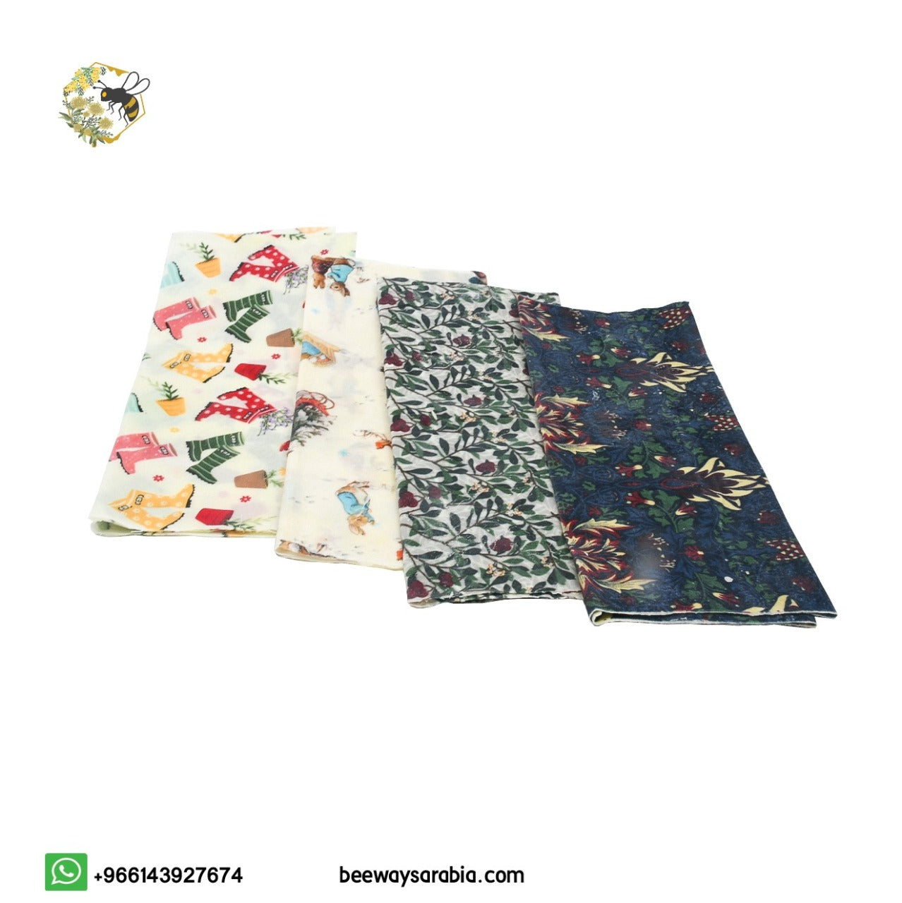 بديل نايلون التغليف الطبيعي؛ مصنوع من قبل شريكنا مناحل سبل النحل من قماش القطن المغسول  يحتوي شمع النحل العازل الطبيعي والصحي، ممكن استعمالها من ٦ أشهر الى سنة للحفاظ عليها؛ تغسل بالماء الجاري والصابون، تغسل بعد استعمالها مباشرة او تمسح بقطعة مبللة نظيفة، للحفاظ عليها لأطول فترة ممكنة لا تغطى فيها الاطعمة الساخنة انتظرها تبرد تماما، او تغسلها بالماء الساخن. للاستعمال ضعها على الطبق قم بإغلاقها باستعمال حرارة اليد حتى تلصق تماما بالوعاء.. او لفها حول الخبز مع اغلاق الاطراف للداخل.