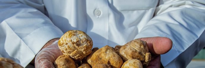 Il tartufo bianco, noto anche come "Faqaa", è una delle rare e pregiate tipologie di tartufo che si caratterizzano per la forma sferica e la consistenza morbida e crescono sottoterra. Per garantire una buona crescita di questi tartufi sono necessarie forti piogge durante l'inverno, e devono essere raccolti al momento giusto tra i mesi di aprile e giugno. I cercatori di tartufi possono localizzarli osservando le fessure del terreno, specifiche piante del deserto o erbe. Alcuni cacciatori usano i cani anche per percepirne l'odore. Questi tartufi crescono principalmente nelle regioni settentrionali del Regno dell'Arabia Saudita, compreso il nord-est e vicino al confine iracheno, così come in città come Al-Sadawi, Al-Jadidah, Hafr Al-Batin e Al-Shu'bah.