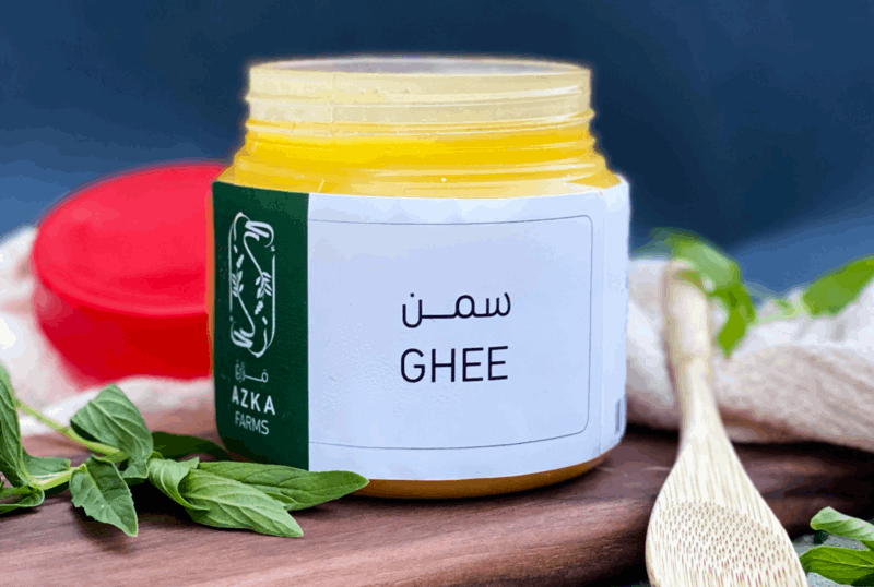 سمن البقر الطبيعي الخالي من الهرمونات والمنتج طازجًا من المزارع المشاركة معنا والتي تقع في أبيار الماشي في حمى المدينة المنورة، على بعد حوالي 294 كم من جدة.